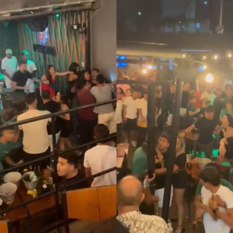 Imagens que circulam nas redes sociais mostram pessoas tentando separar os envolvidos, enquanto os ânimos seguem exaltados. Em meio à confusão, alguns homens chegaram a atirar garrafas de cerveja uns contra os outros.