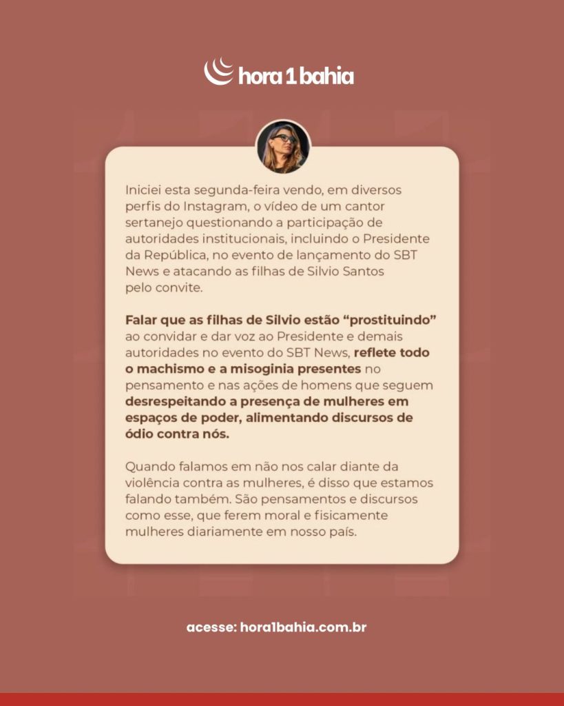 Diante das declarações, a primeira-dama Rosângela da Silva, a Janja, se manifestou em sua conta e repudiou os comentários do cantor, dizendo que imputar às filhas de Silvio Santos termos como “prostituindo” reflete machismo e misoginia. No pronunciamento, Janja defendeu as mulheres que foram alvo das críticas e apontou o episódio como parte de um debate marcado por violência simbólica contra mulheres.