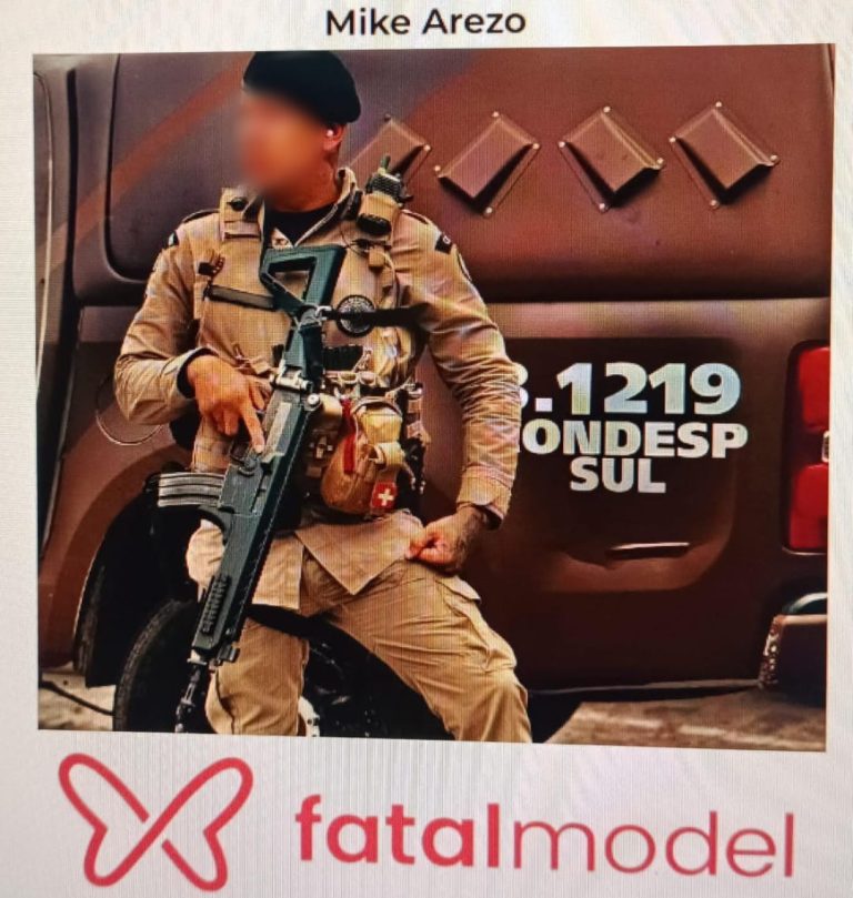 Segundo as informações, o policial utilizava o codinome “Mike Arezo” em uma plataforma voltada à oferta de serviços de acompanhantes. No perfil, hospedado no site Fatal Model, o agente aparecia em imagens fardado, portando arma de fogo e ao lado de uma viatura da corporação.