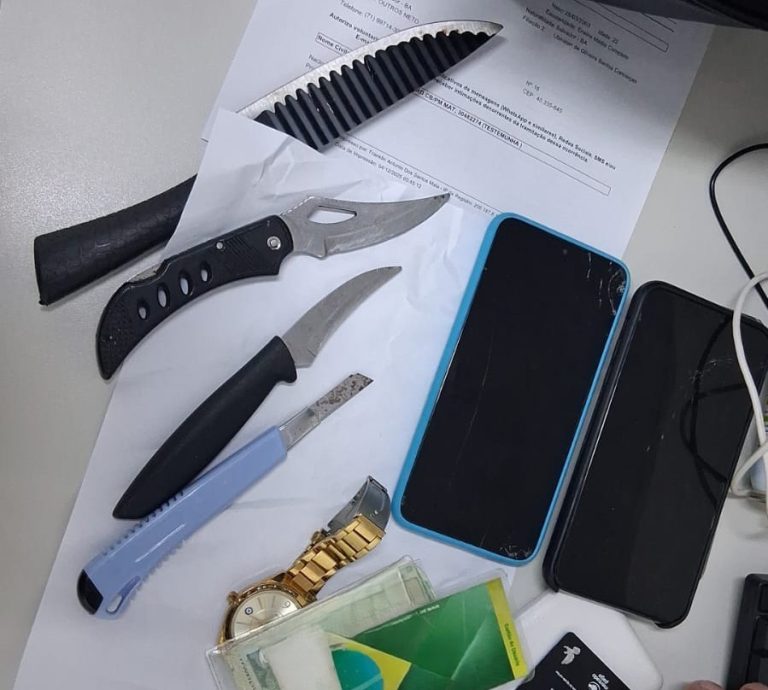 Uma mulher foi presa na noite desta quarta-feira (3) na região da Fonte Nova, em Salvador, após ser flagrada com quatro armas brancas por policiais da 2ª CIPM.