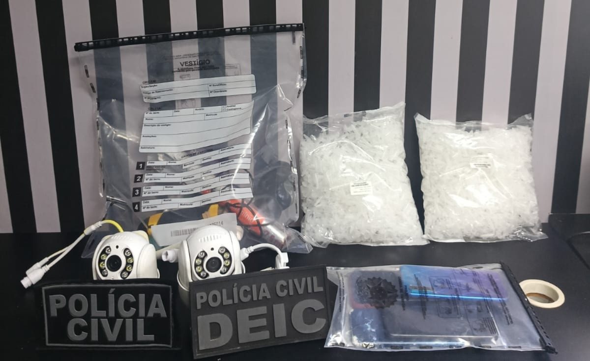 Durante a busca, parte dos microtubos foi encontrada já contendo cocaína. Também foi localizado um saco com aproximadamente 400 gramas da substância. As equipes apreenderam ainda duas câmeras de videomonitoramento, cinco aparelhos de telefonia móvel, estiletes, papel laminado e sacos plásticos, materiais normalmente usados no fracionamento e acondicionamento das drogas.